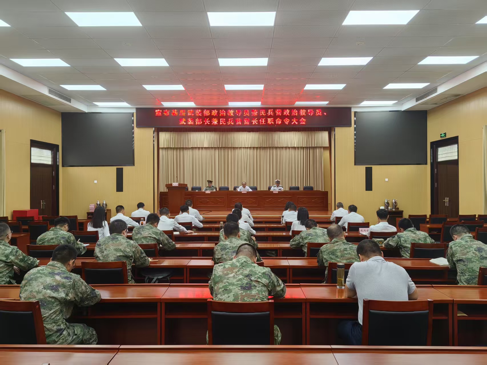 我市基層武裝部政治教導員、武裝部長任職命令大會召開