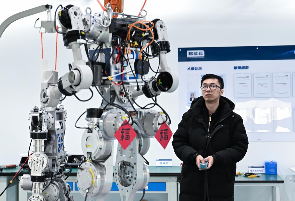 湖北武漢格藍若智能技術(shù)股份有限公司員工在調(diào)試人形機器人。新華社記者杜子璇 攝