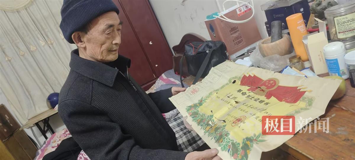 臨行前,方漢炳端詳著父親的烈士證
