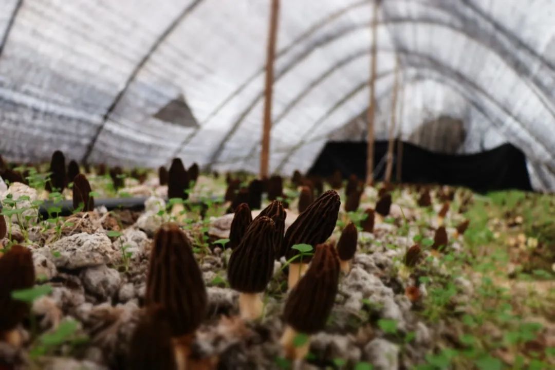 羊肚菌大棚里一朵朵羊肚菌破土而出