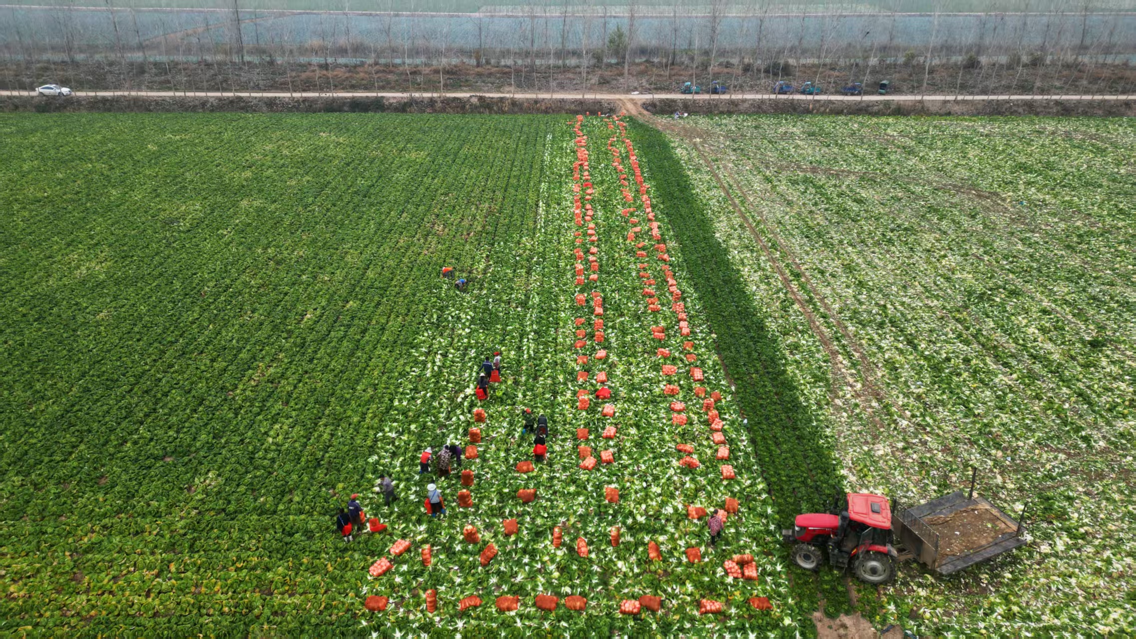縣潘家灣鎮(zhèn)的湖北省嘉紅蔬菜有限公司物流集散中心里,一輛裝滿春甘藍(lán)的卡車整裝待發(fā)?!?2噸甘藍(lán),目標(biāo)山東菏澤。”亞軍物流駕駛員史小建接過出貨單,啟動(dòng)引擎。