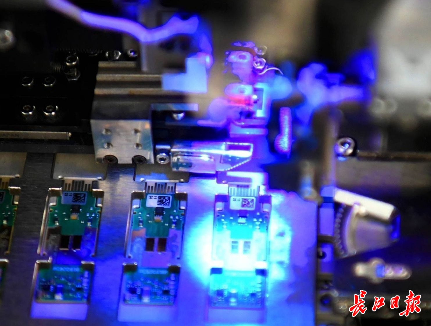 中國信科集團武漢光迅科技股份有限公司全自動高速光模塊生產(chǎn)線在運轉(zhuǎn)。 長江日報記者高勇 攝