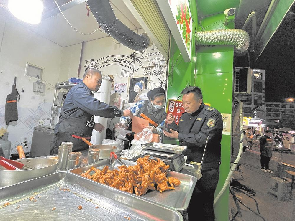 如廁方便,停車有地兒。城管部門積極協(xié)調(diào)公安部門在夜市周邊區(qū)域開展“柔性執(zhí)法”;整合市區(qū)公廁資源,完善公廁“一張網(wǎng)”,方便市民如廁;調(diào)配環(huán)衛(wèi)力量,延長夜間環(huán)衛(wèi)作業(yè)時間,維護(hù)市容環(huán)境;加強(qiáng)督導(dǎo)檢查,對經(jīng)營不合規(guī)的攤主要求整改,確保經(jīng)營有序,市容干凈整潔,道路暢通。