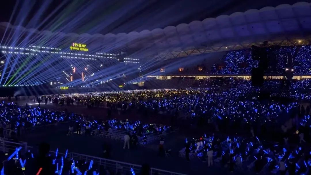 觀眾手持熒光棒,將夜空點(diǎn)亮成一片璀璨燈海。圖源:浩然東津