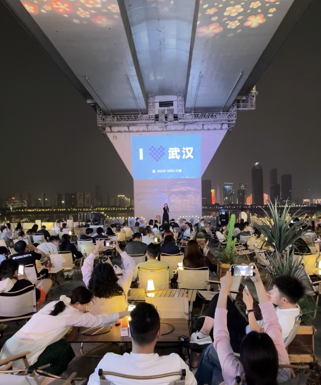 以長(zhǎng)江為軸,武漢兩江四岸精心打造的夜游景觀帶,串聯(lián)起漢口江灘的市集、“江遇”橋墩電影、青山江灘國(guó)際沙排浪潮生活周等繽紛體驗(yàn)。五一假期,武昌、漢口、漢陽三地江灘迎客突破90萬人次。漢口江灘新開知音國(guó)色美學(xué)生活館,每日“非遺課堂”人氣旺。“江遇”橋墩電影每晚客流爆滿,到了晚上9點(diǎn)依舊有游客前來取號(hào)等待入場(chǎng)。