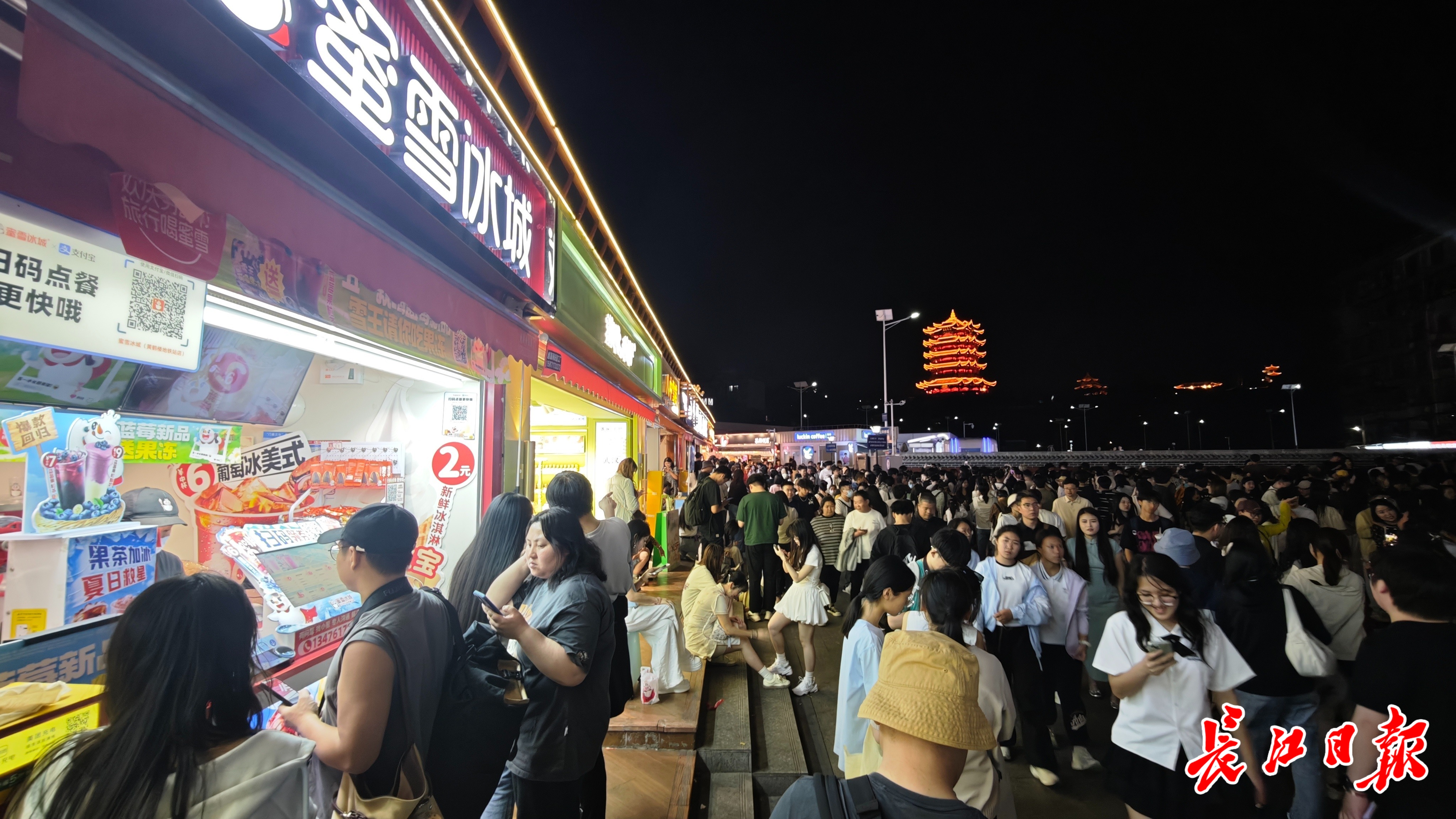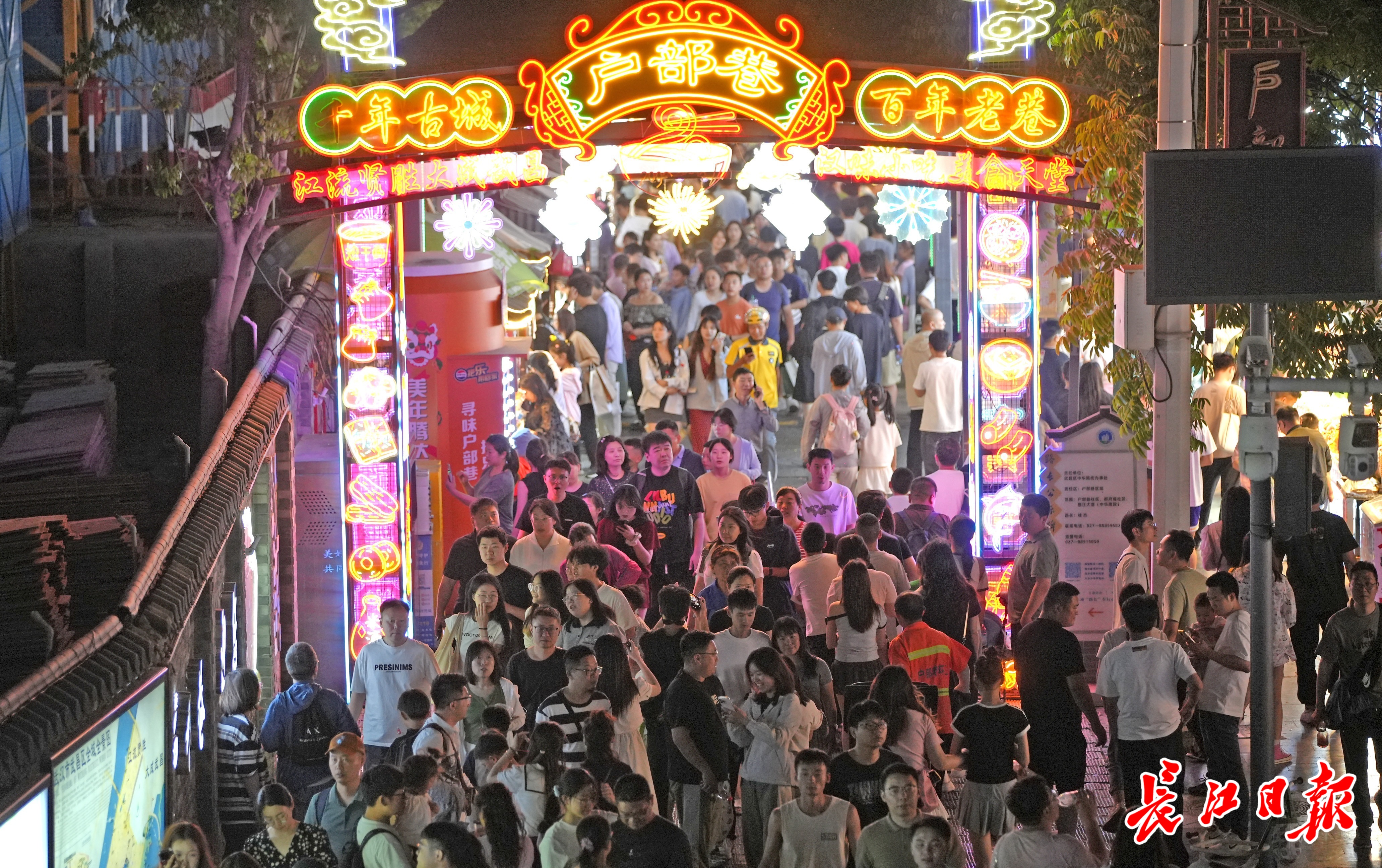 當(dāng)游客們走下游船,往武昌古城可逛曇華林、戶部巷,打卡司門口黃鶴樓紅墻;往老漢口可夜游江漢路、黎黃陂路,打卡巴公房子。5月4日,央視新聞?lì)l道五四特別節(jié)目《奮斗華章 青春中國(guó)》講述曇華林圈粉年輕人的故事,這里每天客流量都突破5萬人次。5月4日晚,央視《新聞聯(lián)播》關(guān)注了五一假期的江漢路,這里人潮涌動(dòng),熱鬧非凡,假期首日客流量突破45萬人次??诒澈?,是武漢將長(zhǎng)江基因轉(zhuǎn)化為文旅魅力的生動(dòng)實(shí)踐。