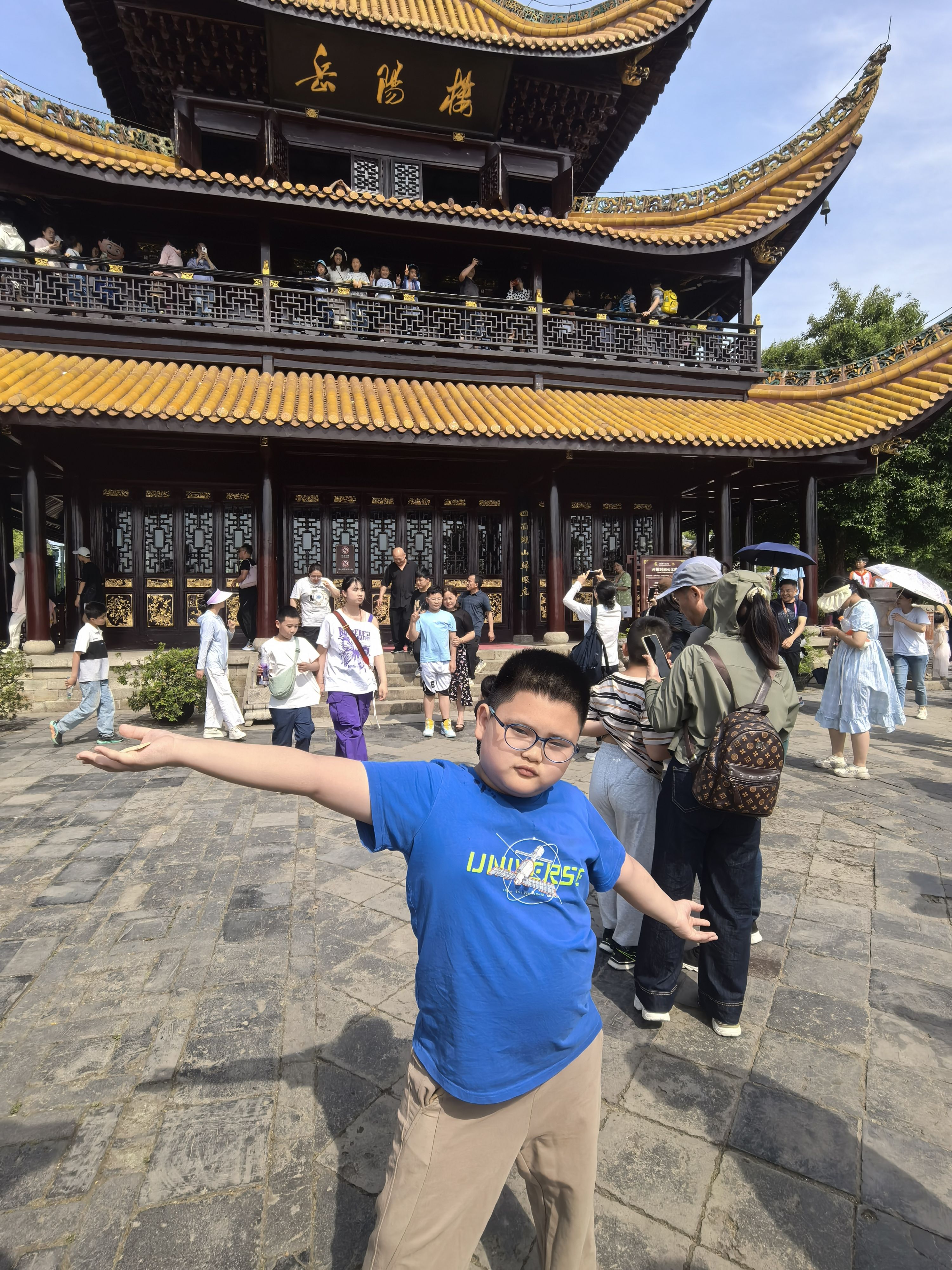“五一”假期,武漢市民郭女士帶孩子打卡岳陽樓。郭女士 供圖