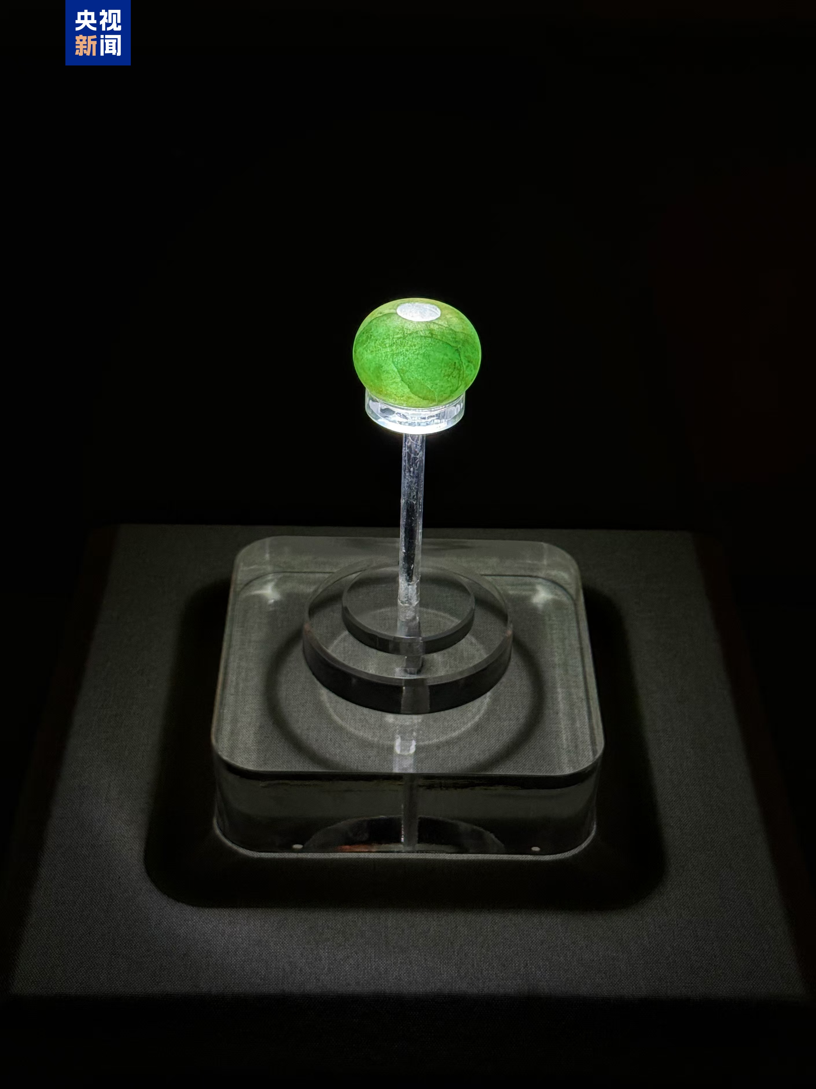 這塊石頭會發(fā)出碧綠溫潤的光澤