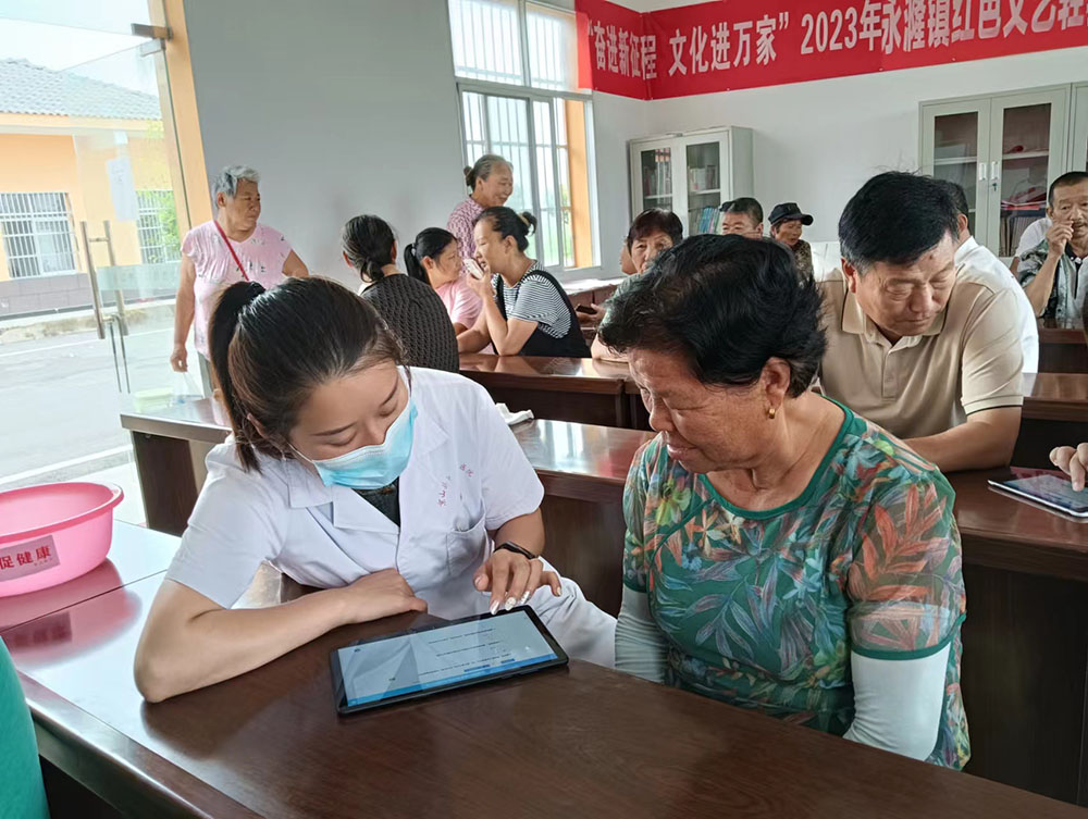 近日,市疾控中心組織專(zhuān)業(yè)醫(yī)護(hù)人員深入各鄉(xiāng)鎮(zhèn)、街道,全面開(kāi)展健康素養(yǎng)監(jiān)測(cè)與健康科普宣傳活動(dòng)。在新市街道四嶺村村委會(huì)大廳,醫(yī)護(hù)人員與村民們面對(duì)面交流,耐心詢(xún)問(wèn)并了解村民們身體健康狀況,并現(xiàn)場(chǎng)將村民的健康數(shù)
