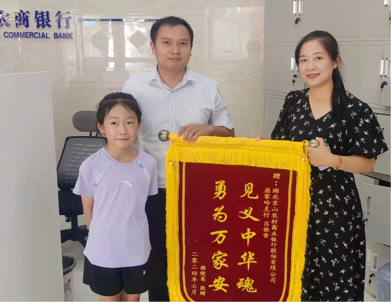 8月2日,市農(nóng)商銀行屈家?guī)X支行內(nèi)上演了溫馨一幕。一位婦女同女兒一起,將印有“見(jiàn)義中華魂 勇為萬(wàn)家安”的錦旗,交給了該行員工呂傲雪,感謝其見(jiàn)義勇為,英勇施救的善舉。事情要追溯到今年6月8日,呂傲雪一家三