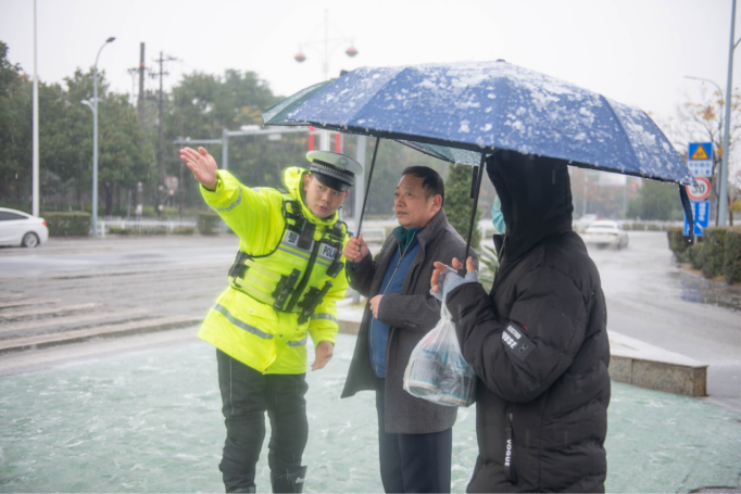 12月15日,京山全市范圍陸續(xù)出現(xiàn)降雪天氣,導(dǎo)致路面積雪濕滑,給廣大群眾出行帶來不便。為避免交通事故發(fā)生,守護(hù)廣大群眾出行安全,京山公安民輔警堅(jiān)守崗位、疏導(dǎo)交通、幫困解難,全力確保轄區(qū)道路交通安全暢通