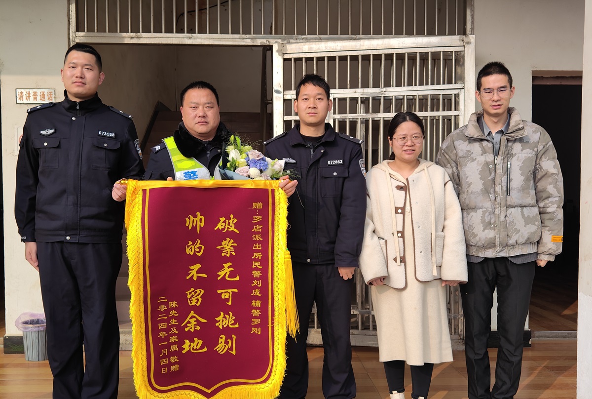 “民警們辦案的速度真是杠杠的,為你們點(diǎn)贊!”1月9日,陳先生一家為羅店派出所送來錦旗和鮮花,感謝民輔警幫助陳先生找回遺失的手機(jī)。1月4日,陳先生在新市城區(qū)丟失一部價(jià)值5000元左右的小米手機(jī)。根據(jù)手機(jī)