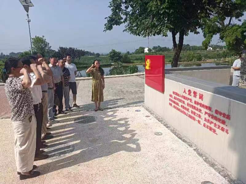 5月23日,市委老干部局組織機(jī)關(guān)單位離退休黨員干部開展五月主題黨日活動(dòng)?!拔抑驹讣尤胫袊伯a(chǎn)黨,擁護(hù)黨的綱領(lǐng),遵守黨的章程……”在孫橋鎮(zhèn)青樹嶺村張文秋故居,全體黨員干部面對鮮紅的黨旗,重溫入黨誓詞。旗