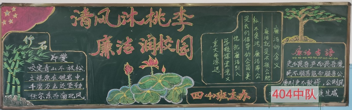 11月18日,新市一小開(kāi)展“清廉伴我行”主題黑板報(bào)評(píng)比活動(dòng)。各班積極組織學(xué)生圍繞“清廉”這一主題,精心設(shè)計(jì)版面,以圖繪廉、以文述廉,體現(xiàn)了對(duì)清廉之風(fēng)的崇尚,對(duì)清廉之志的認(rèn)同。各班黑板報(bào)緊扣主題,內(nèi)容豐