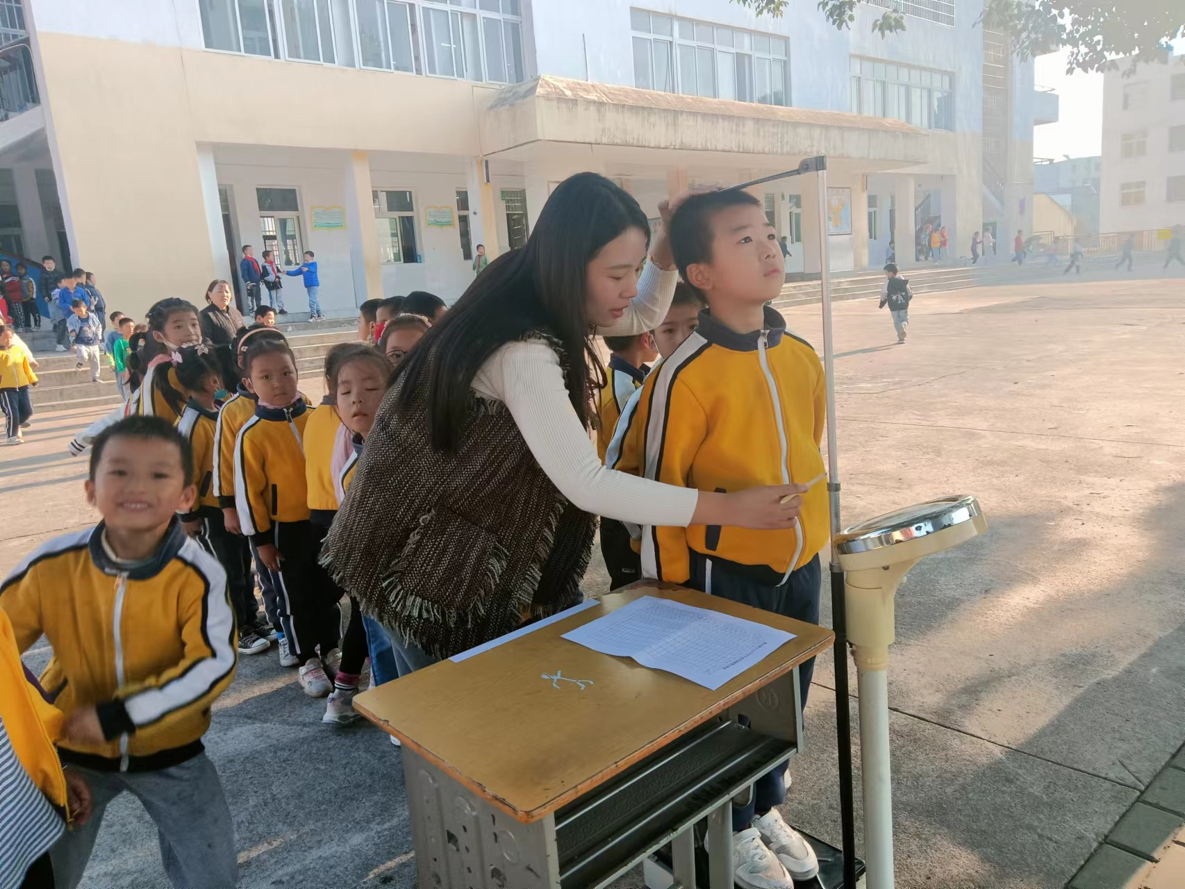 11月3日,曹武鎮(zhèn)中心小學(xué)啟動(dòng)學(xué)生體質(zhì)健康測試工作,檢測學(xué)生身高、體重、肺活量、50米×8往返跑、一分鐘跳繩等項(xiàng)目,全方面記錄學(xué)生體質(zhì)健康情況,貫徹落實(shí)《學(xué)生體質(zhì)健康標(biāo)準(zhǔn)》。 (教師為學(xué)生測量身高)教