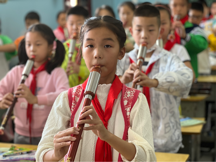 9月28日,巴烏樂曲在新市一小三至六年級的教室緩緩流淌,該校2022年秋季“巴烏之韻”特色課程拉開序幕。(全班學生學習演奏樂曲《瑪麗有只小羊羔》)課堂伊始,專業(yè)的巴烏指導老師現(xiàn)場演奏了一曲《荷塘月色》