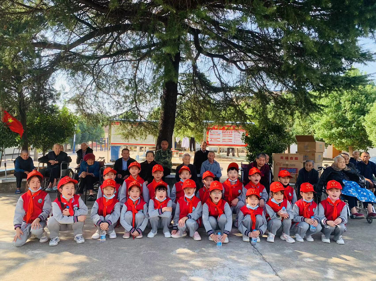 (三一中隊學生們?yōu)槔先藗兯蜏嘏妥8#?月29日,曹武鎮(zhèn)中心小學三一中隊學生開展“重陽節(jié)”敬老愛老主題活動,為曹武鎮(zhèn)朱嶺陽光家園敬老院的老人們送去了新時代少先隊員的關心和祝福?;顒又?,少先隊員們幫助老