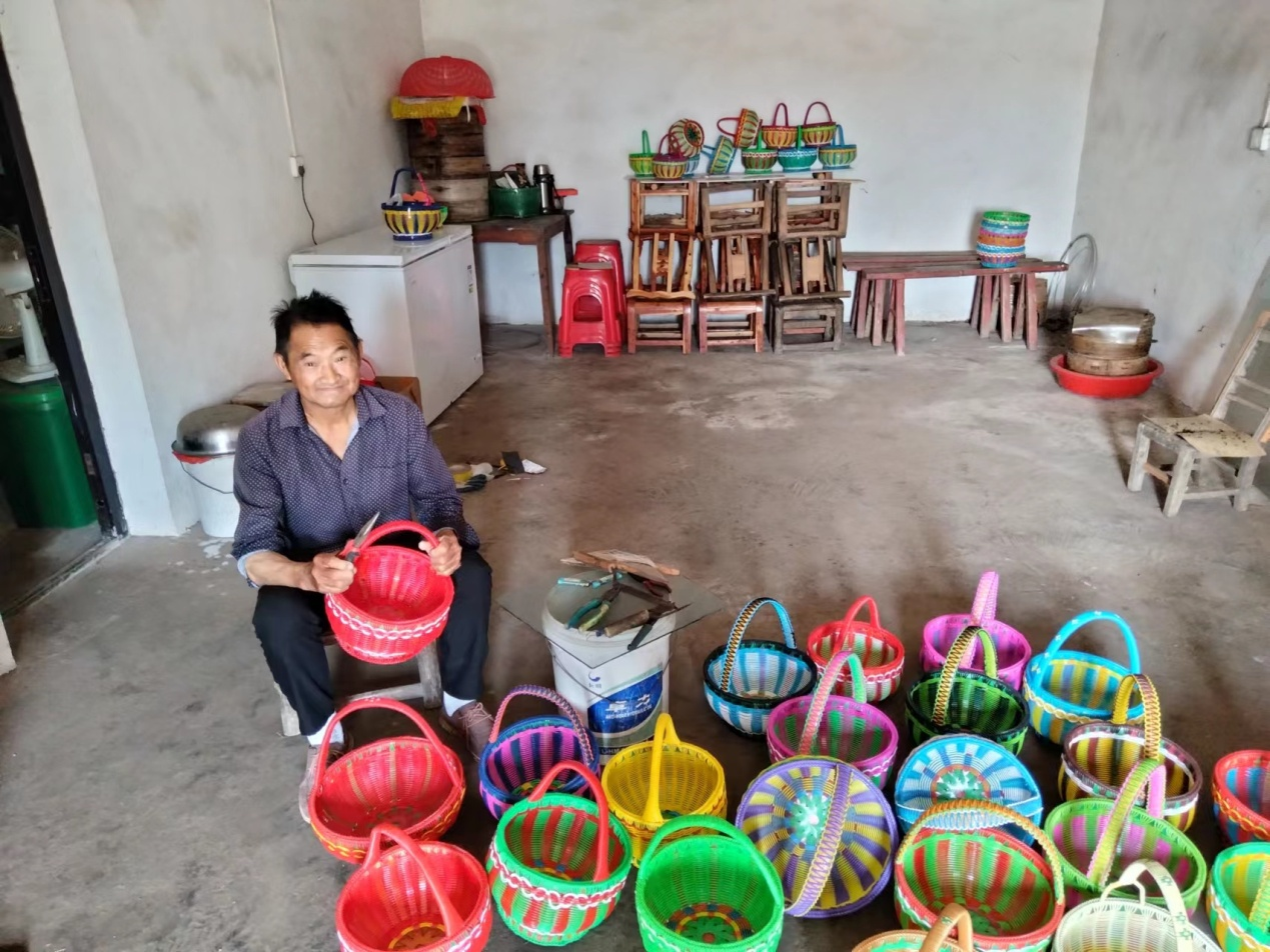 (王國良編織的手工花籃)6月30日,市中等職業(yè)技術(shù)學校部分教師從駐村干部手中領(lǐng)到了一個個美麗的花籃。據(jù)了解,王國良是市中等職業(yè)技術(shù)學校包聯(lián)的廠河村一位60多歲的村民,由于患有尿毒癥基本喪失了勞動能力,