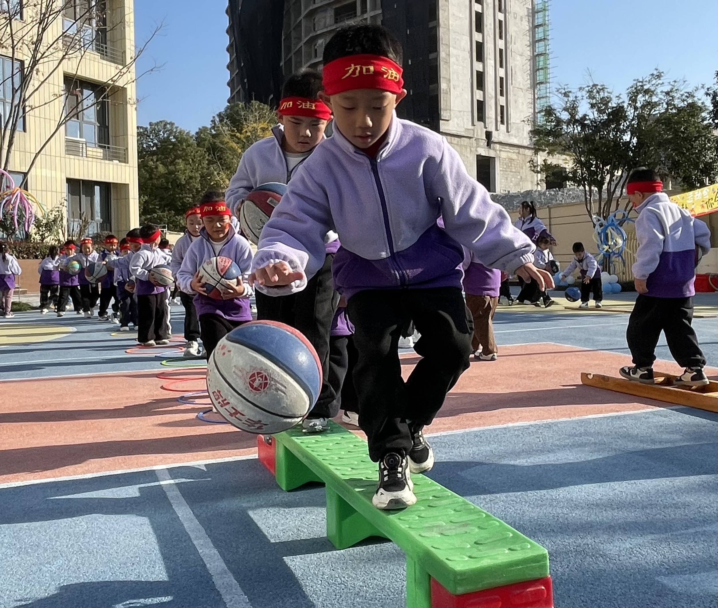 聯(lián)投園區(qū)圍繞“迎籃而上?追球夢(mèng)想”,點(diǎn)燃籃球激情。活力四射的籃球操拉開序幕,親子趣味賽接連開展?!靶∥浵佭\(yùn)球”“拍球過(guò)河”等環(huán)節(jié),既考驗(yàn)?zāi)?,又凝聚親情與團(tuán)隊(duì)力量。小小籃球,拍響的是成長(zhǎng)的節(jié)拍,傳遞的是協(xié)作的快樂(lè)。