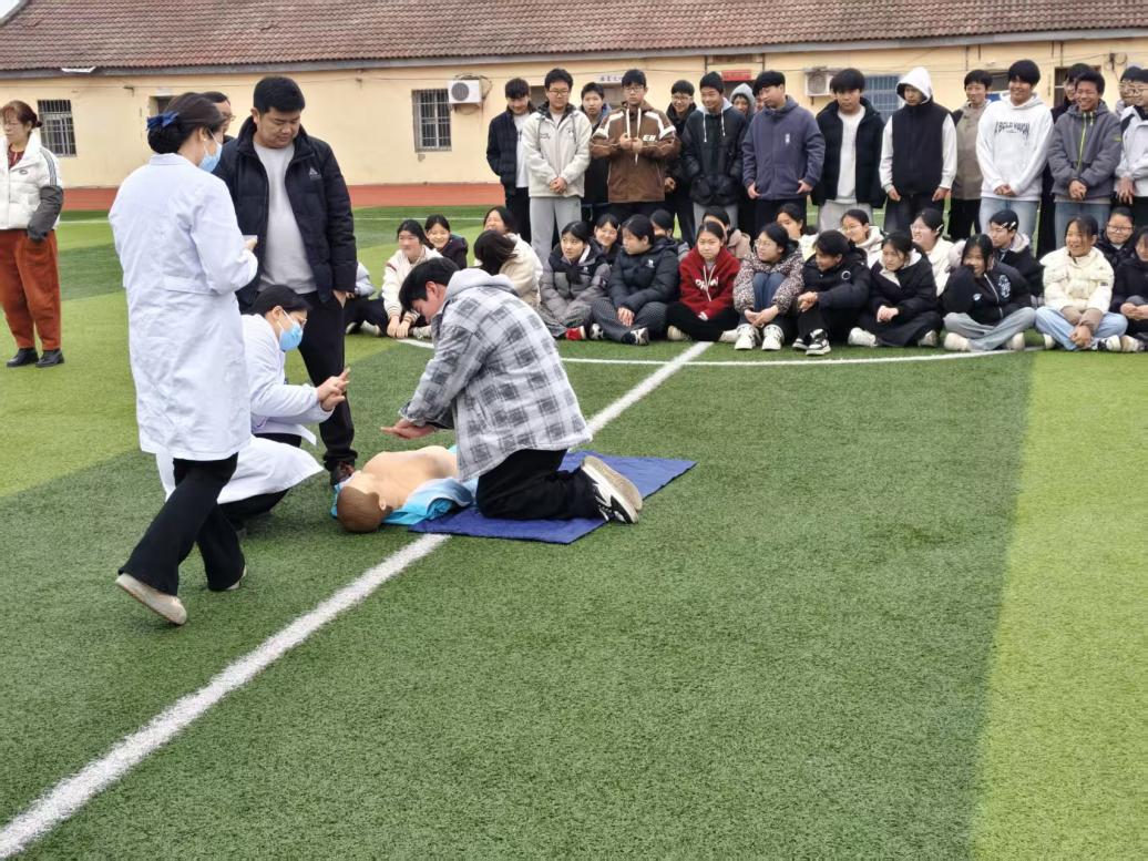 培訓(xùn)伊始,醫(yī)護(hù)人員結(jié)合校園生活中可能遇到的突發(fā)狀況,深入淺出地講解了心肺復(fù)蘇術(shù)(CPR)操作要點(diǎn)。在心肺復(fù)蘇講解環(huán)節(jié),醫(yī)護(hù)人員借助醫(yī)用模擬人進(jìn)行全流程示范,從手掌貼放、手臂發(fā)力,到仰頭抬頦、口對(duì)口吹氣,每一個(gè)動(dòng)作都標(biāo)準(zhǔn)規(guī)范、細(xì)致到位。