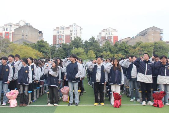 在莊嚴宣誓環(huán)節(jié),全體高三學子面向國旗,高舉右拳莊嚴宣誓,展現出五中學子不負韶華、決勝高考的堅定決心。