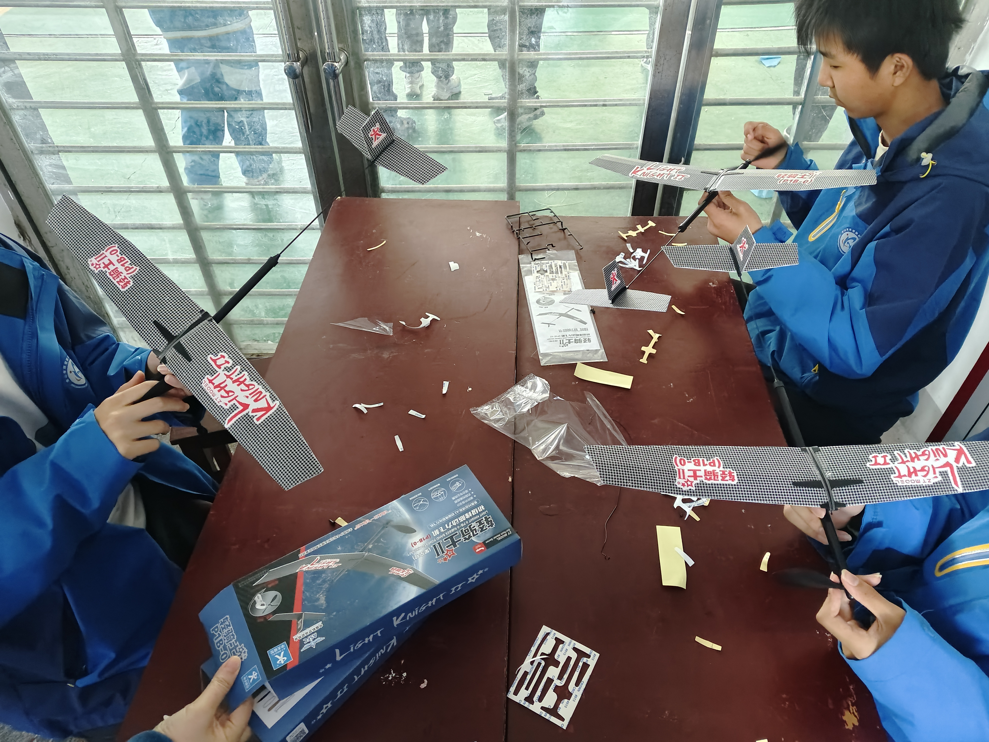 11月7日,第四屆小小愛(ài)飛客航模競(jìng)賽正在激烈進(jìn)行,坪壩中學(xué)航模隊(duì)參加了橡皮筋動(dòng)力滑翔機(jī)比賽,隊(duì)員們?nèi)褙炞⒌剡M(jìn)行著組裝工作?! ≡诠ぷ髋_(tái)前,隊(duì)員們熟練地拿起橡皮筋,并將其安裝到位,確保動(dòng)力傳輸?shù)姆€(wěn)