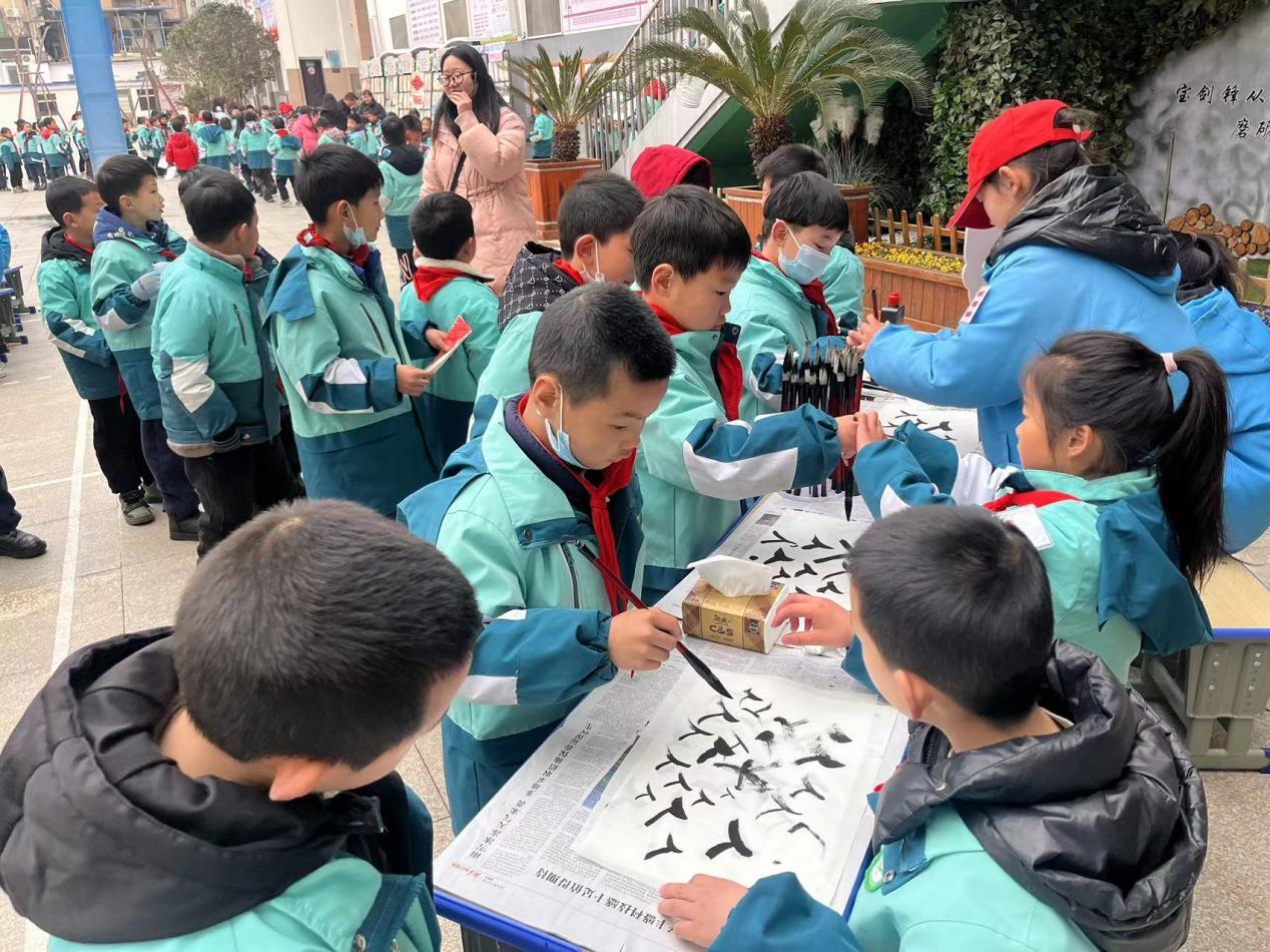 2月29日,實(shí)驗(yàn)小學(xué)舉行“萬象更新·龍重登場(chǎng)”春季學(xué)期開學(xué)典禮暨“新春游園會(huì)”活動(dòng)。全校2600名師生和家長(zhǎng)參加活動(dòng)。儀式上,該校領(lǐng)導(dǎo)、教師用手中的智慧筆蘸上紅色的朱砂,為一年級(jí)學(xué)生代表“點(diǎn)朱啟智”,