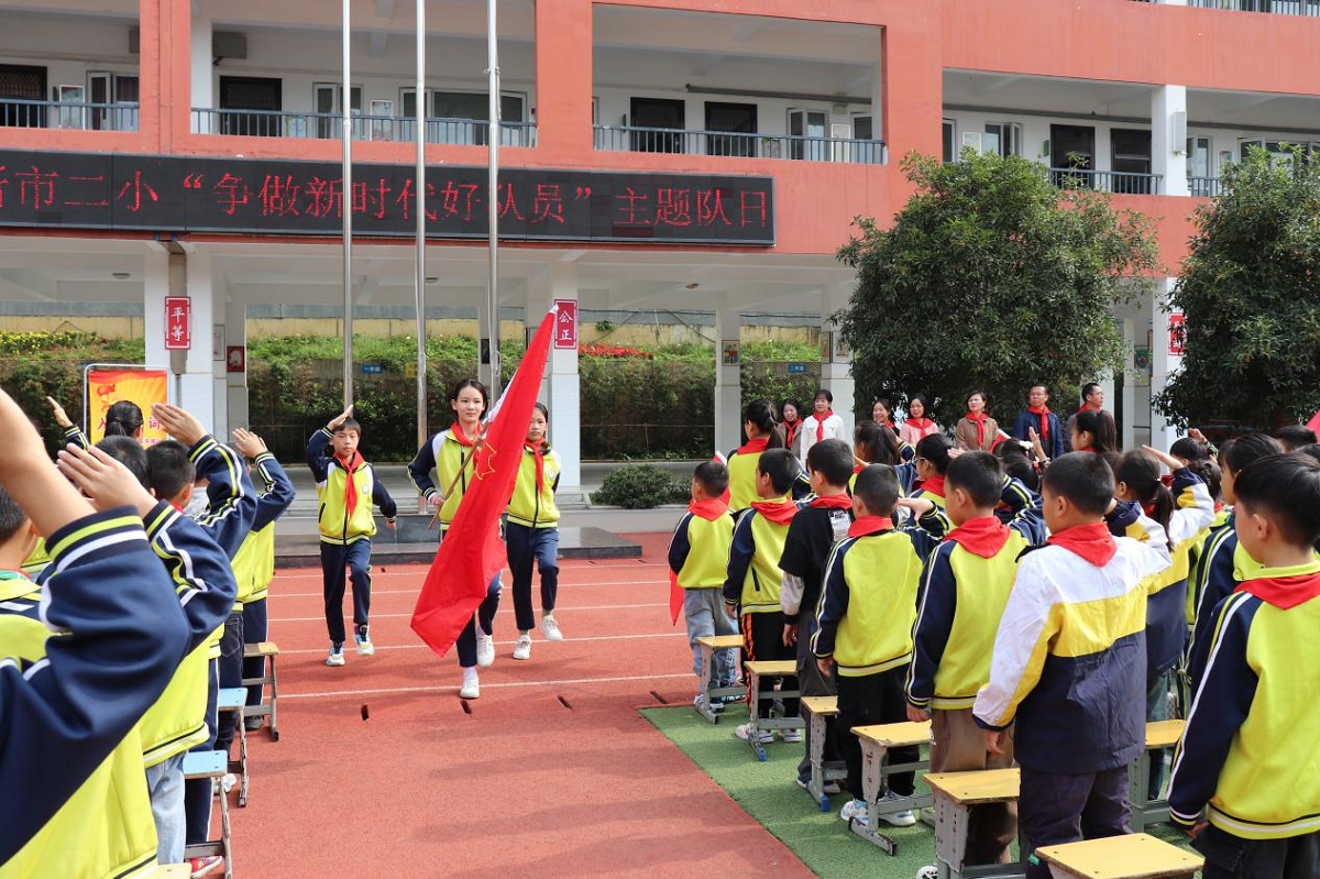 10月13日,新市第二小學舉行“紅領巾心向黨·爭做新時代好隊員”建隊日主題活動。活動在雄壯的隊歌中拉開序幕,少先隊護旗手邁著矯健的步伐莊嚴出旗。嘹亮的隊歌聲高亢激昂、堅定有力,隊員們用昂揚的激情和飽滿