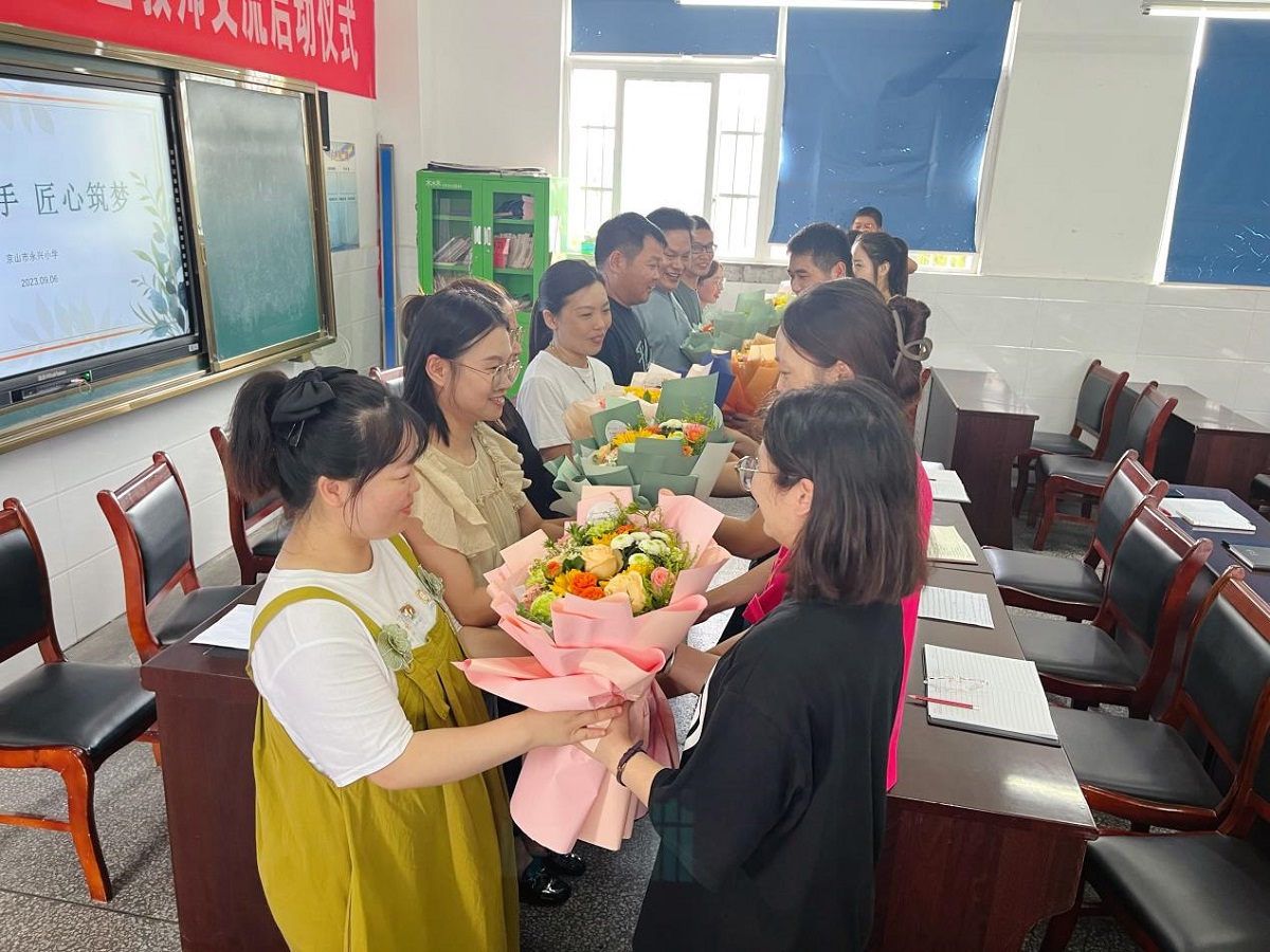 9月6日中午,永興小學(xué)全體教師齊聚教學(xué)樓三樓多功能會議室,開展“青藍工程”師徒結(jié)對儀式。儀式上,青年教師鄭重簽訂了師徒結(jié)對協(xié)議并合影留念。師徒簽約不僅簽下了承諾、責(zé)任和期待,也簽下了虛心學(xué)習(xí)的態(tài)度,不