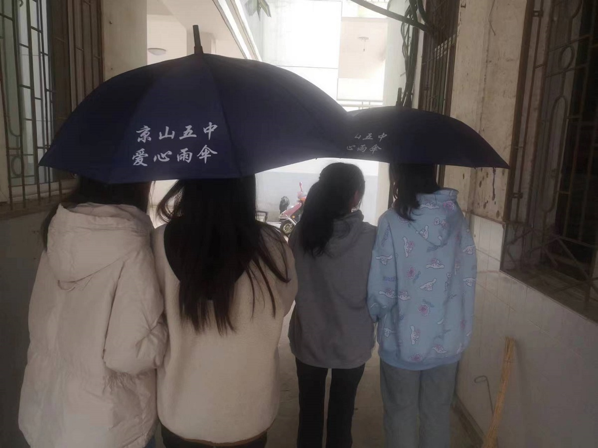 風(fēng)雨不孤單,小傘裝大愛(ài)——京山五中“愛(ài)心雨傘”送溫情 3月29日,京山五中總務(wù)處組織策劃“愛(ài)心雨傘”項(xiàng)目,為全校師生提供便利,這是五中開(kāi)展“我為師生辦實(shí)事”活動(dòng)的一個(gè)縮影。 (定制“愛(ài)心雨傘”投入使用