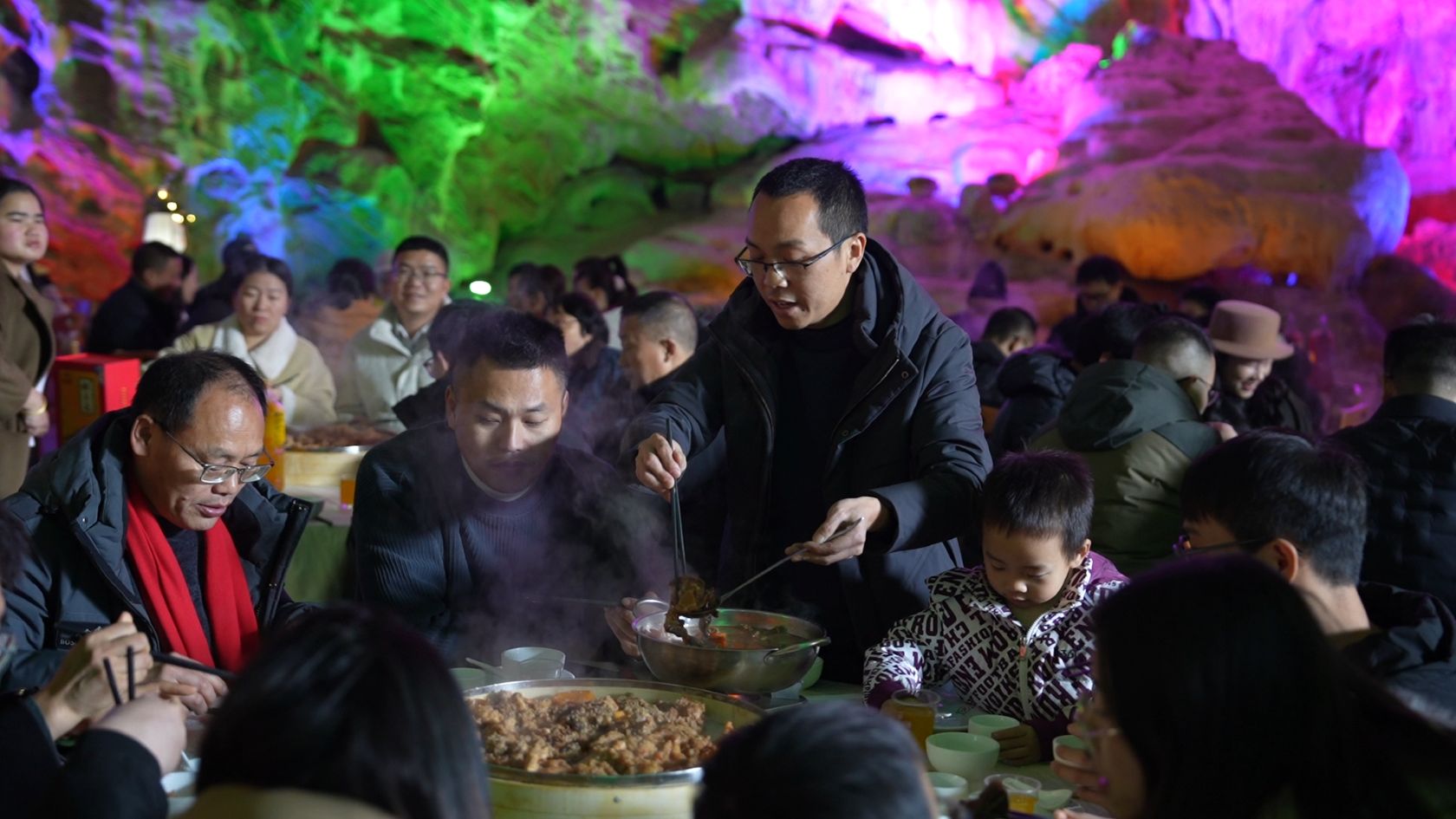 2月8日,京山首屆溶洞農(nóng)家宴在煥新升級的空山洞景區(qū)熱鬧開席。一場融合溶洞奇景、鄉(xiāng)土美食與新春年味的特色活動,吸引300多名游客前來體驗(yàn)。市政協(xié)主席易紅梅,市委常委、市委辦公室主任王漢豐,副市長張瓊慧參加開園儀式。