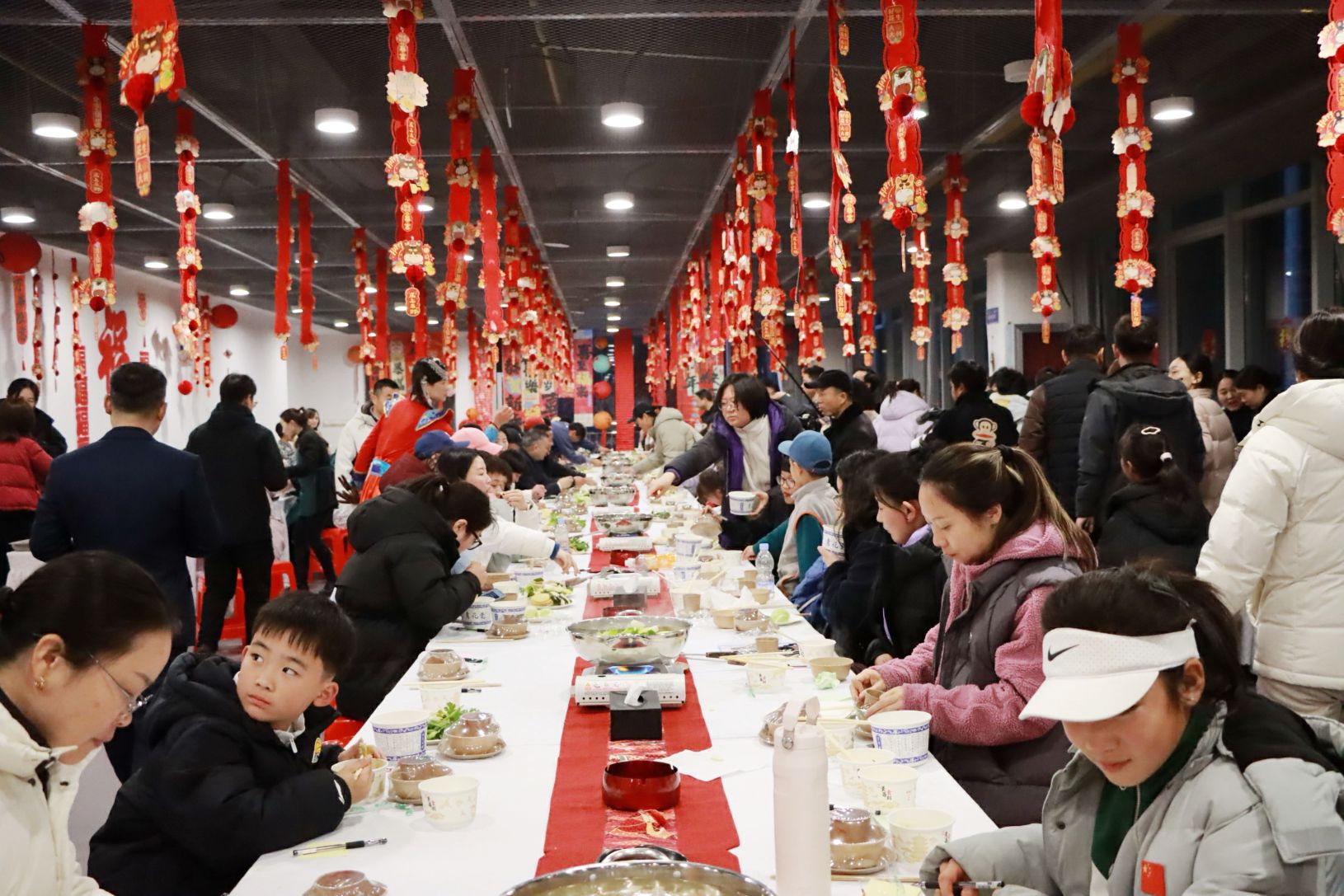 活動中,學(xué)員、教練員及學(xué)生家長進行交流分享。大家共同寫下新春心愿、粘貼于心愿墻,寓意夢想啟航;隨后分組體驗制作燈籠、非遺剪紙、網(wǎng)球造型饅頭及包福字餃子等年味十足的活動,現(xiàn)場歡聲笑語不斷,洋溢著濃厚的團圓氣息。