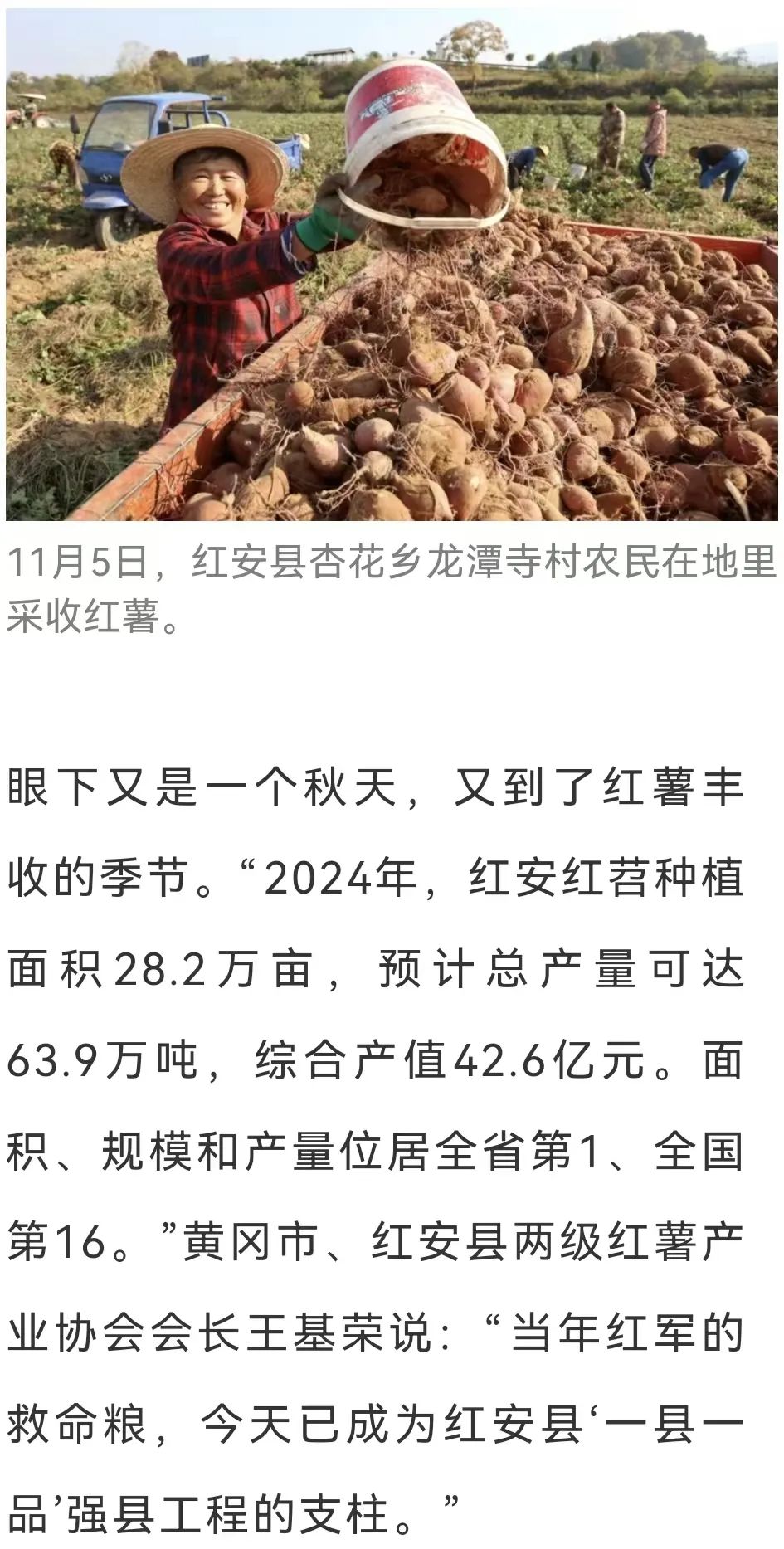 2019年秋,華中農(nóng)業(yè)大學(xué)副教授蔡興奎,受紅安縣瑞灃種植養(yǎng)殖專業(yè)合作社理事長姚峰之邀,來紅安考察紅薯產(chǎn)業(yè)發(fā)展時,就曾看到大片紅薯爛在地里。