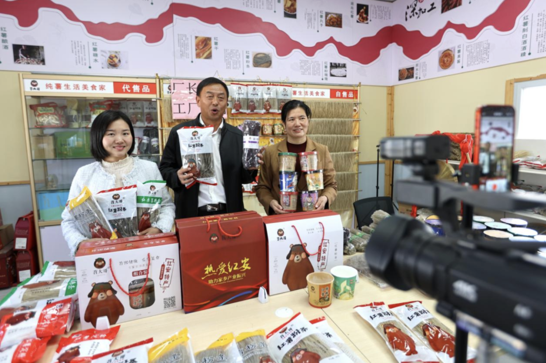 銷售決定生產(chǎn),市場決定命運(yùn)。近年來,紅安縣通過走出去參加粵港澳大灣區(qū)農(nóng)產(chǎn)品產(chǎn)銷對接會、第十屆北京農(nóng)業(yè)嘉年華等展銷活動,請進(jìn)來舉辦紅安苕訂單種植收購簽約會,線上線下共同發(fā)力等途徑,不斷拓展紅薯銷售渠道,推動紅安紅薯走出紅安、走向全國、邁向國際。目前,在線上,紅安紅薯主要通過苕大哥、瑞灃農(nóng)業(yè)、紅土優(yōu)選等紅苕電商直播基地網(wǎng)絡(luò)銷售;線下,鮮食紅薯主要銷往廣州、武漢四季美農(nóng)貿(mào)市場及大專院校、機(jī)關(guān)食堂等;鮮食加工產(chǎn)品主要銷往本地加工企業(yè)及福建等地客商。2023年,七里坪鎮(zhèn)福德橋村與美國理想食品簽訂300噸產(chǎn)值660萬元的粉絲訂單,紅安紅薯成功走出國門。