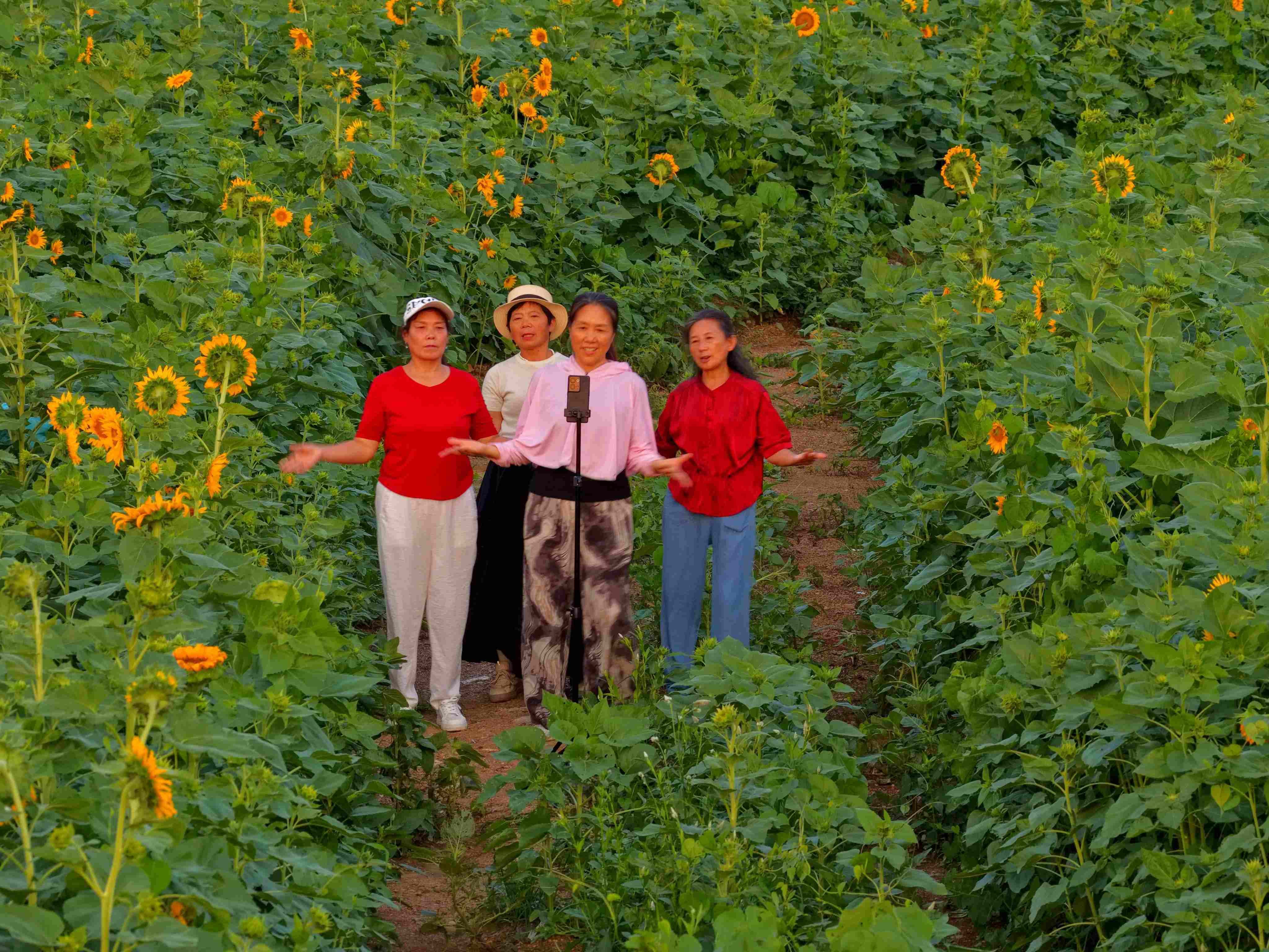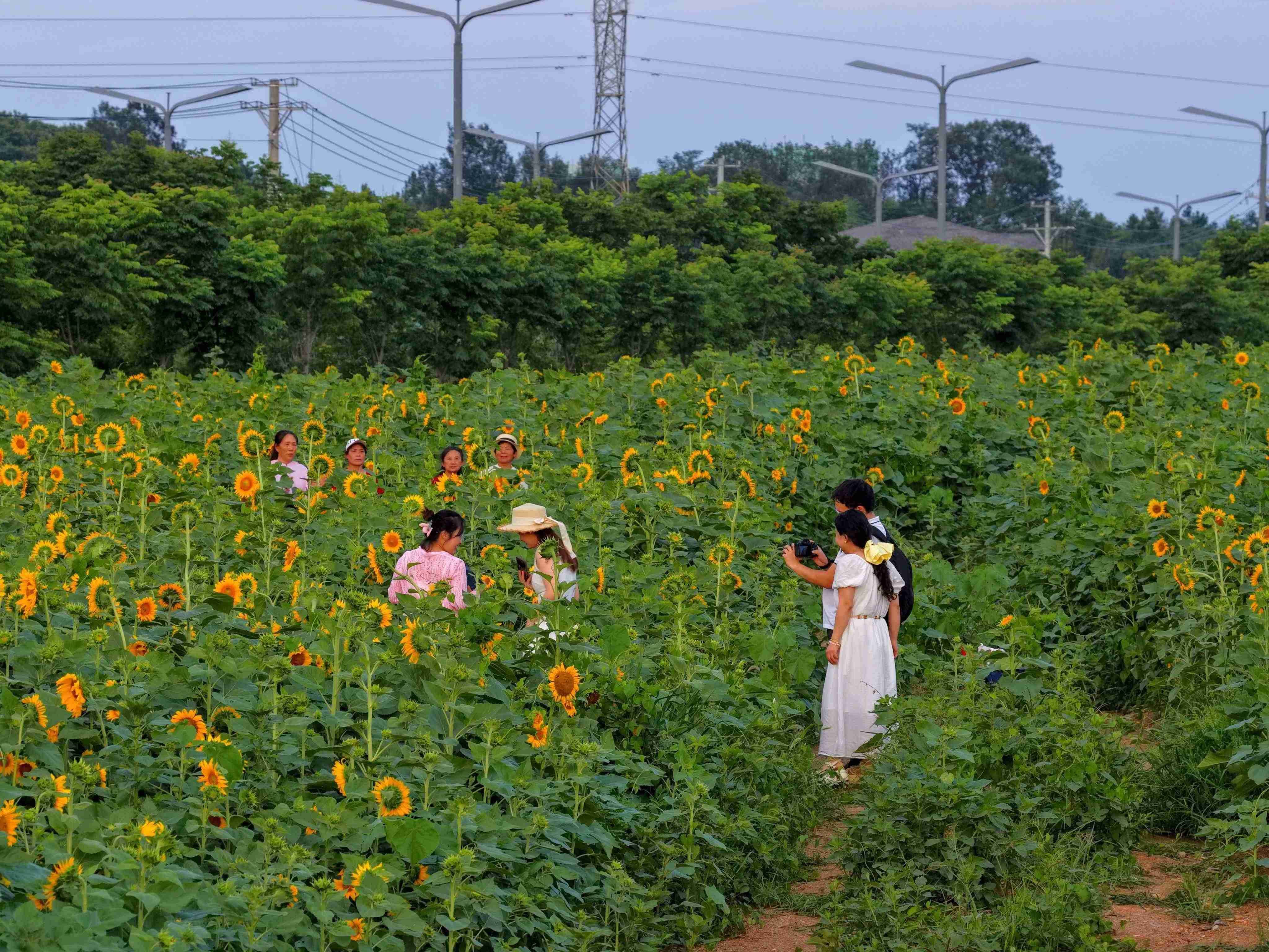 進(jìn)入6月中旬以來,這里的向日葵陸續(xù)開花,競相綻放,吸引了市民游客前來游玩、觀賞、拍照打卡,盡享田園風(fēng)光。(肖朕天)