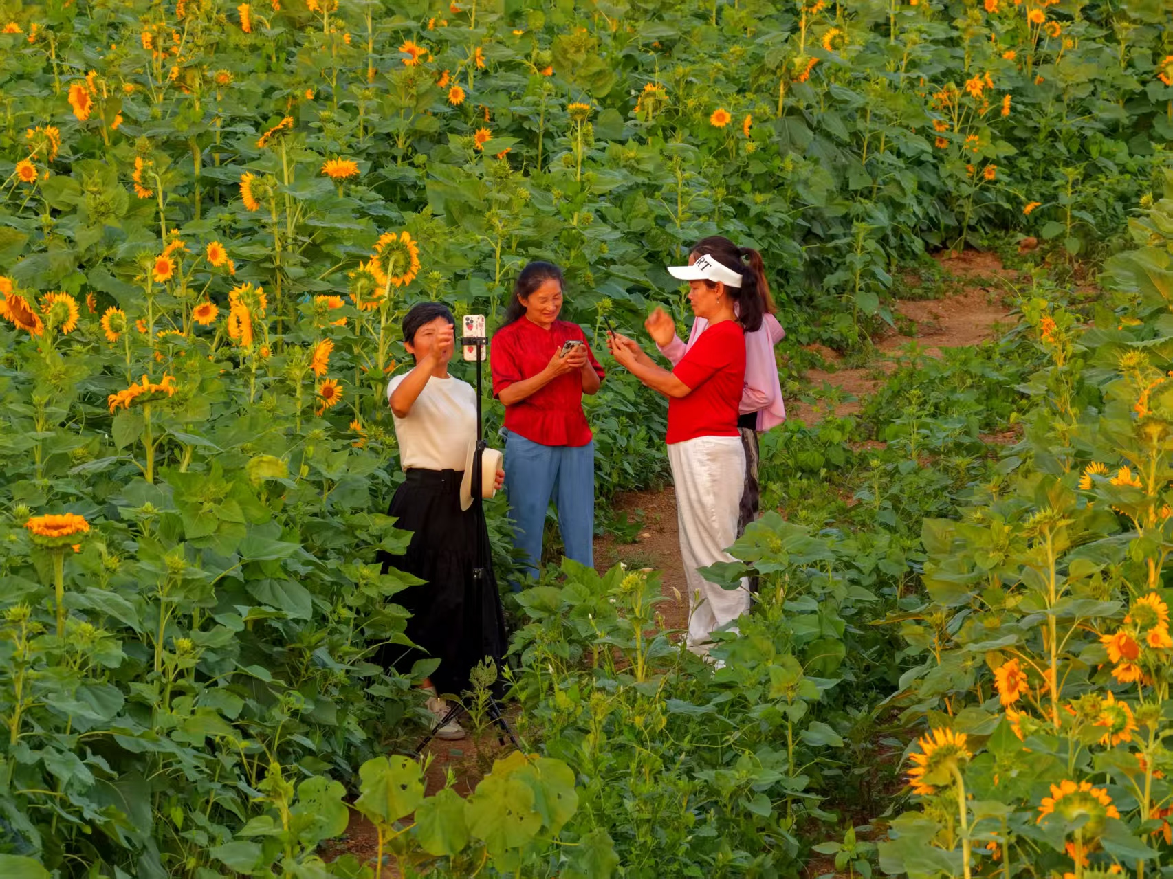 6月24日,走進(jìn)溫泉街道馬路對(duì)面的向日葵花海中,不少市民在向日葵田間賞花、游玩、拍照。