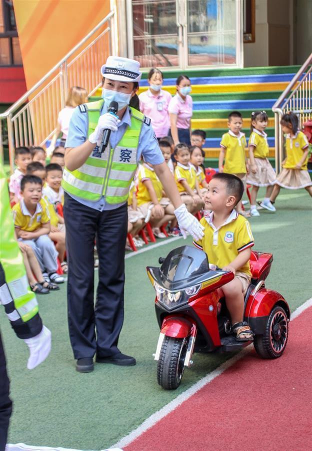 湖北日報2022-09-16 12:589月14日,京山交警走進聰明屋幼兒園和紺弩小學,為小朋友們帶來交通安全“開學第一課”,萌娃們紛紛騎上玩具摩托車,井然有序地通過紅綠燈,在輕松愉悅的互動氛圍中學到
