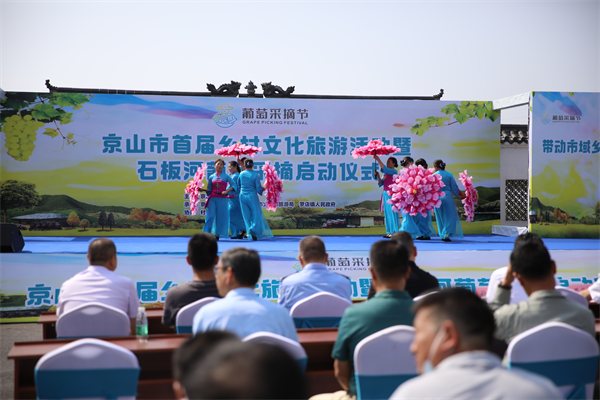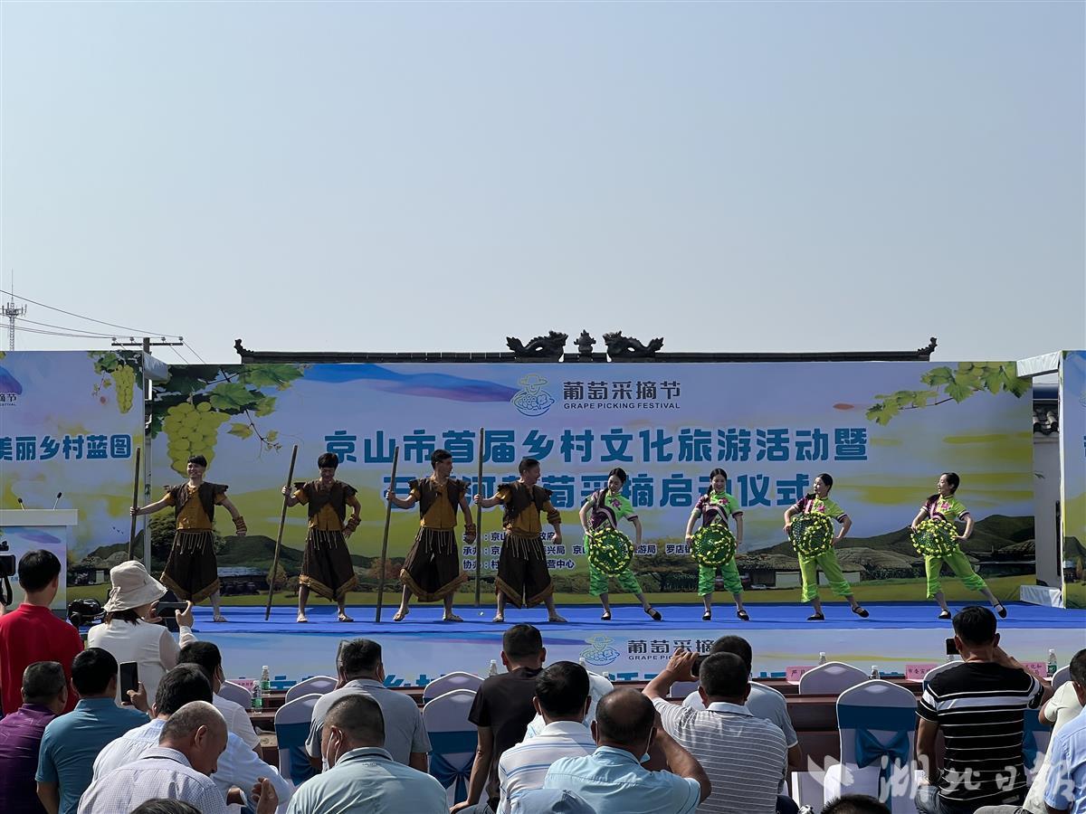 9月16日上午,京山市舉辦首屆鄉(xiāng)村文化旅游活動暨石板河葡萄采摘活動?;顒蝇F(xiàn)場,鑼鼓聲、歌舞聲、歡笑聲匯成一曲和諧交響樂……賓客聚攏而來,游客紛至沓來,同赴這場秋天的“約會”?! ∈搴哟逦挥诰┥绞?/span>