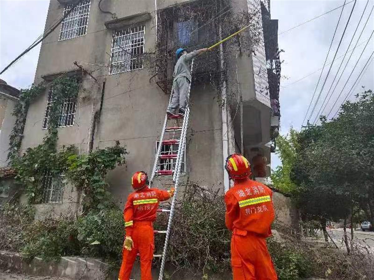我叫潘孟德,今年86歲,老伴89歲,我們居住在京山市新市鎮(zhèn)任畈路自建的一棟三層小樓。20多年前,我在房屋外墻旁邊栽種了一株金銀花,天長日久,金銀花藤從房屋外墻一直延伸到了三樓房頂、防盜網(wǎng)、水管、電線上