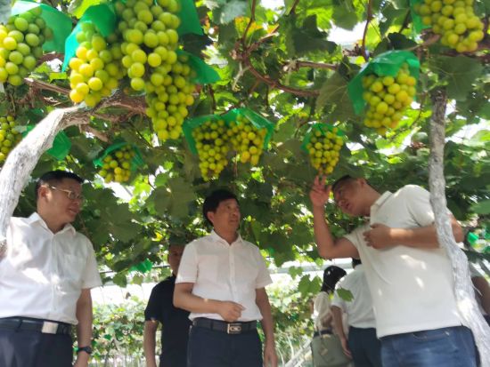 湖北日報訊 (記者童晨曦、通訊員成麗平、余舟)9月16日上午,京山市首屆鄉(xiāng)村文化旅游活動暨石板河葡萄采摘活動在羅店鎮(zhèn)石板河村舉辦。活動現(xiàn)場的種植大棚內(nèi),飽滿圓潤,富有濃郁玫瑰香味的陽光玫瑰葡萄吸引游人