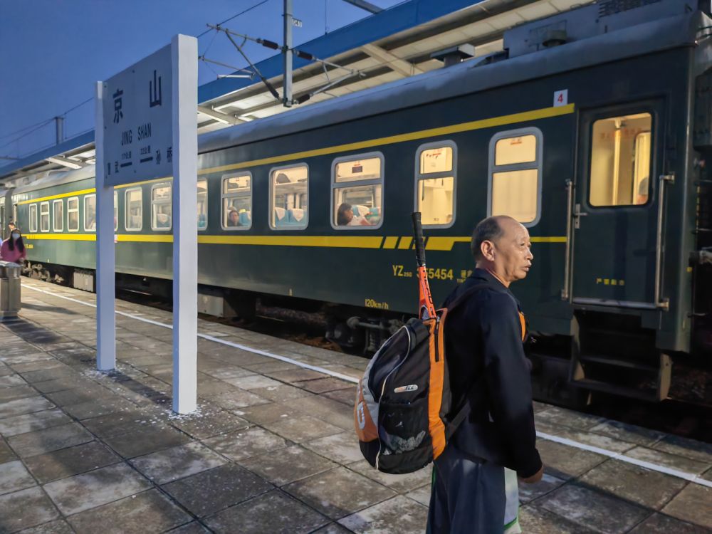 10月12日,背著網(wǎng)球拍的李世彪從武漢抵達(dá)京山火車(chē)站。新華社記者 樂(lè)文婉 攝