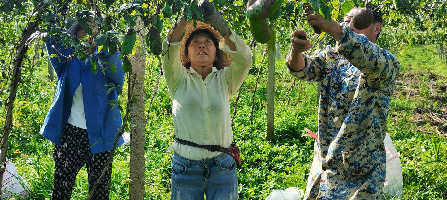 7月31日,在湖北省京山市三陽(yáng)鎮(zhèn)團(tuán)林村的八月瓜產(chǎn)業(yè)基地里,農(nóng)戶(hù)們正在忙著采果,交流種植經(jīng)驗(yàn),針對(duì)長(zhǎng)勢(shì)不一的果子進(jìn)行分析,一片熱鬧景象。圖為農(nóng)戶(hù)們正在忙著采果(馬瑨蕓 攝)三陽(yáng)鎮(zhèn)團(tuán)林村堅(jiān)持黨建引領(lǐng)產(chǎn)業(yè)發(fā)