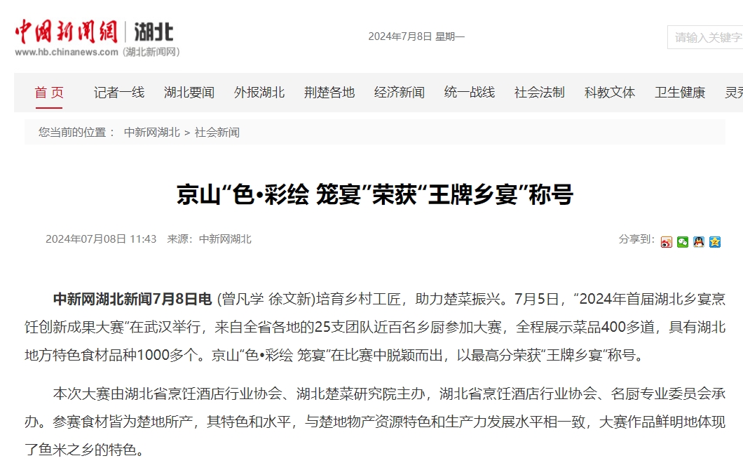 【中新網(wǎng)】京山“色?彩繪 籠宴”榮獲“王牌鄉(xiāng)宴”稱號(hào)