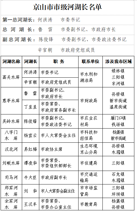 市河湖長制工作委員會關于調(diào)整市級河湖長的通知