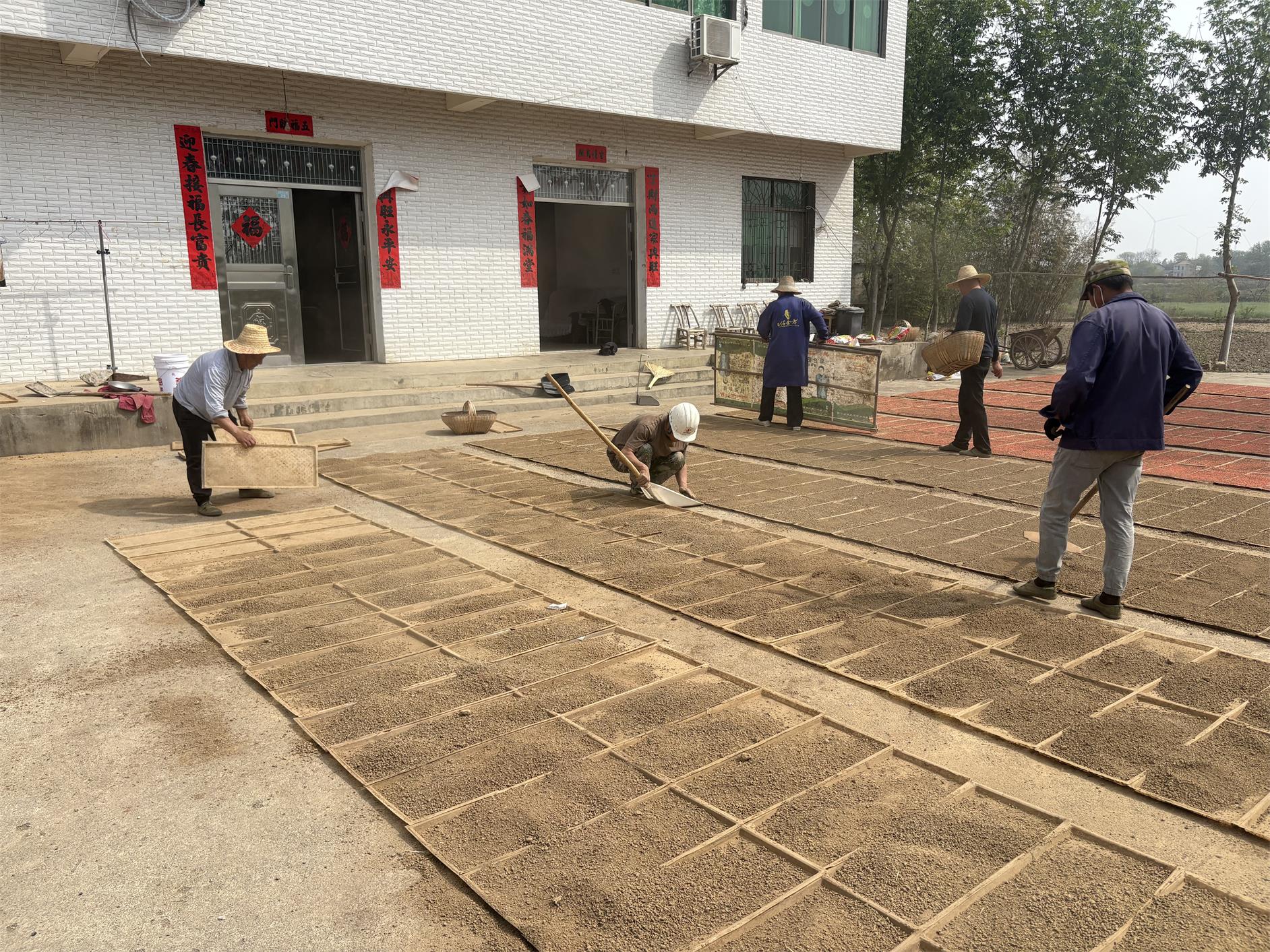 4月22日,曹武鎮(zhèn)谷家?guī)X村村民正搶抓中稻育秧的關(guān)鍵時期,緊鑼密鼓地開展育秧培土工作。