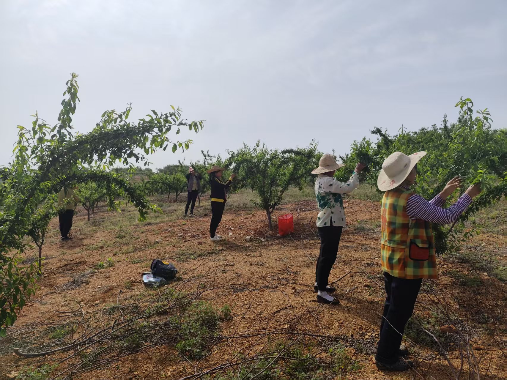 5月6日,曹武鎮(zhèn)白泉村組織32名村民有序開展疏果工作,為果實品質(zhì)把好“第一關(guān)”。