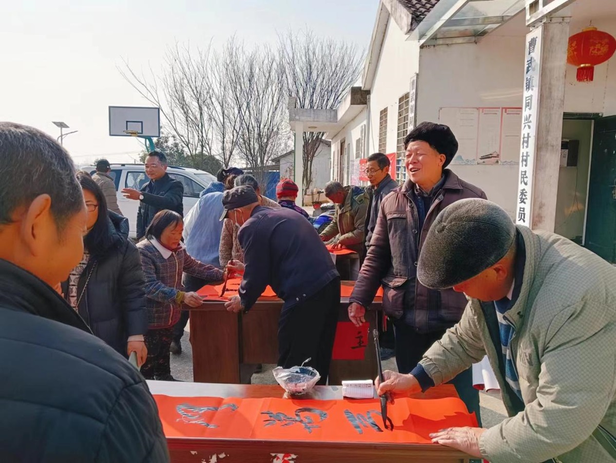 1月13日,春節(jié)將至,年味漸濃。為傳承中華優(yōu)秀傳統(tǒng)文化,營造喜慶祥和的節(jié)日氛圍,曹武鎮(zhèn)文體站帶領5名書法愛好者和5名志愿者走進同興村,開展“春到萬家——迎龍年 過大節(jié)”免費送春聯(lián)活動,為村民送上新年祝