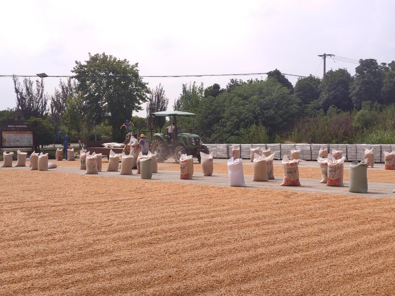 (曹場村村民在曬場曬糧)“曬場修建之后,晾曬糧食更方便了!門前變得空曠整潔,鄰居間聊天談心也有了好地方?!苯眨芪滏?zhèn)曹場村二組的王大叔興奮地說。以往每年收獲后,糧食的存儲(chǔ)成為最令他頭疼的事,而今年新