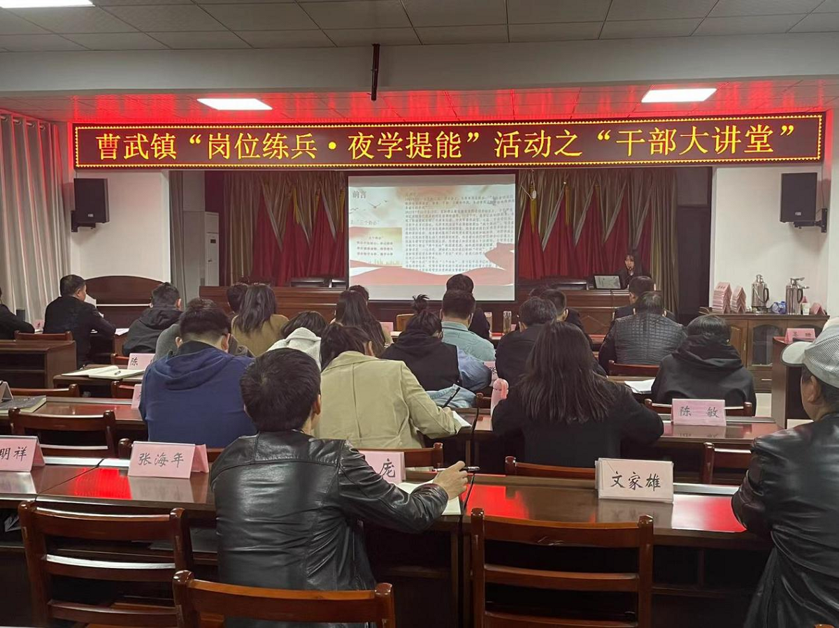 機(jī)關(guān)干部夜學(xué)3月15日晚,曹武鎮(zhèn)政府四樓會(huì)議室燈火通明,該鎮(zhèn)第二次“練兵提能夜學(xué)班”如期開(kāi)講?;顒?dòng)中,本次授課干部裴慧子通過(guò)ppt講解的形式,對(duì)黨的二十大報(bào)告的結(jié)構(gòu)框架、主要內(nèi)容進(jìn)行了全面梳理,從認(rèn)真
