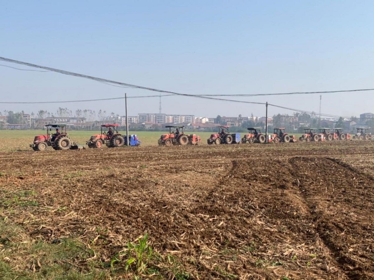 10月23日上午,在羅店鎮(zhèn)袁河村田間,十?dāng)?shù)臺農(nóng)機正緊鑼密鼓,成排連片開展作業(yè),田埂上站滿了附近村來瞧熱鬧的農(nóng)戶。京山市農(nóng)機發(fā)展中心在此組織了相關(guān)市場主體和各鎮(zhèn)農(nóng)機服務(wù)人員,舉辦京山市“北斗+農(nóng)機”推廣